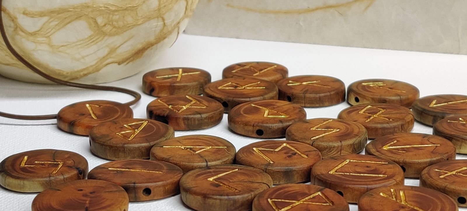 • Eiben-Amulette mit Blattgold, Blattsilber und Intarsien