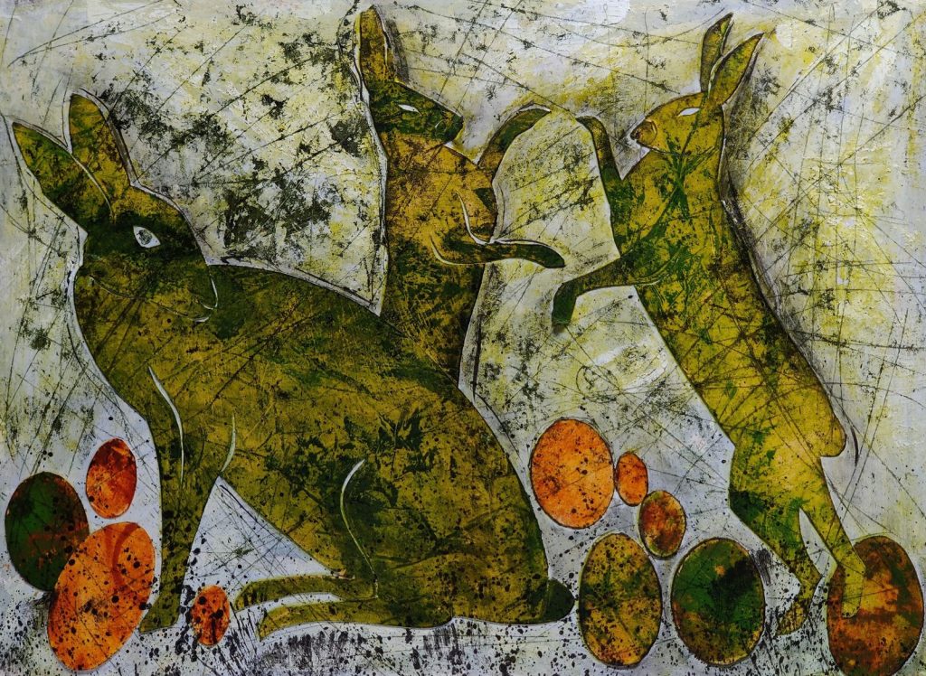 Die Gelatine-Platte ist ein flexibles Medium, welche uns ermöglicht, Farben, Formen und Texturen auf Papier oder Leinwand zu übertragen. Es ist einfach, macht Spaß und man bekommt beeindruckende Ergebnisse!
