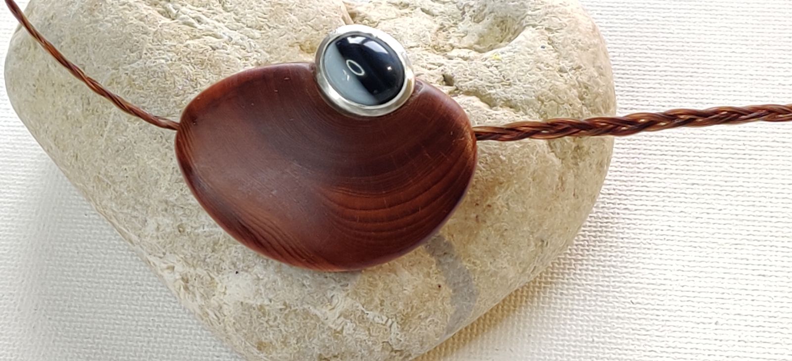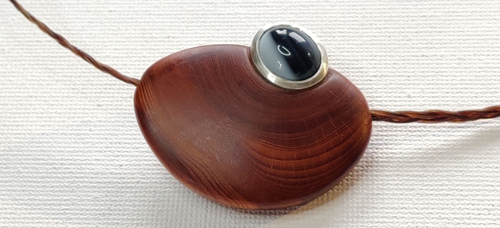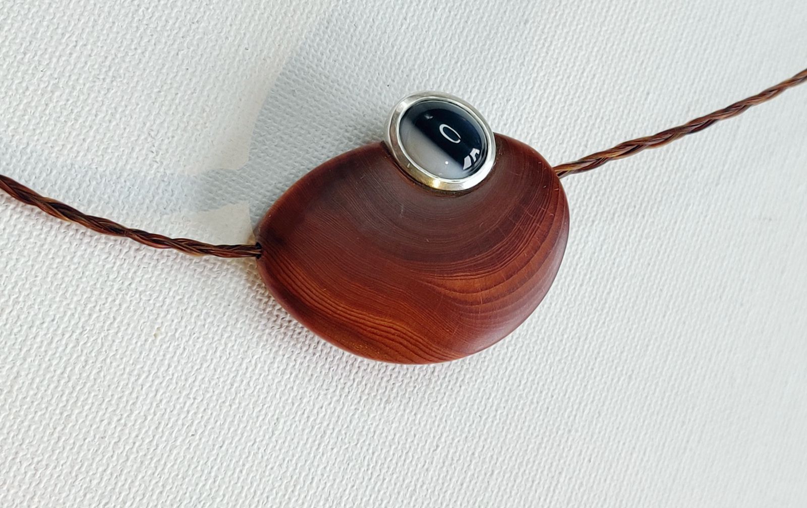 Das Band ist aus geflochtenem Pferdehaar und am Ende mit einem Silberverschluss versehen.