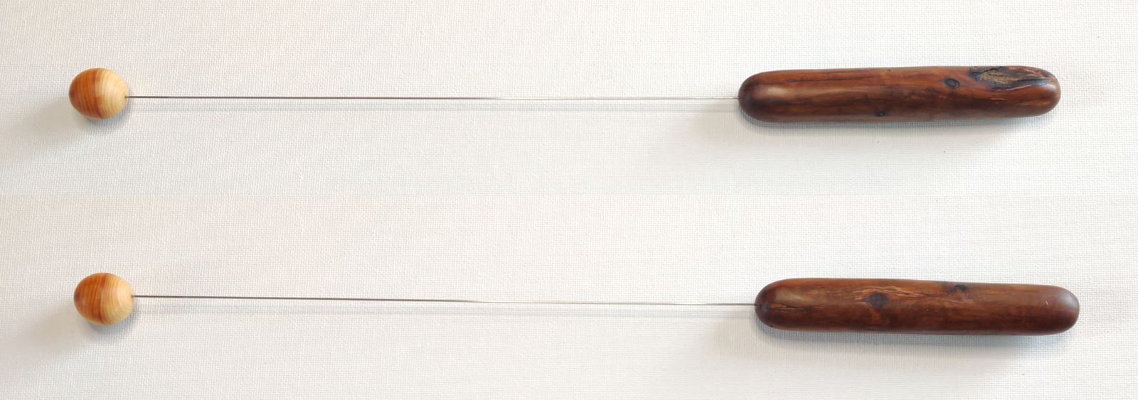 Kugel und Griff sind aus Eibenholz, der Draht besteht aus Federkernstahl, er wurde in Kugel und Griff eingefügt und mit Kunstharzkleber befestigt.