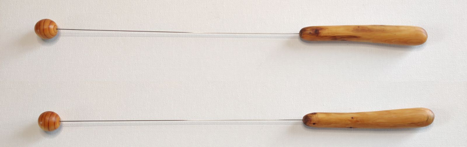Kugel und Griff sind aus Eibenholz, der Draht besteht aus Federkernstahl, er wurde in Kugel und Griff eingefügt und mit Kunstharzkleber befestigt.