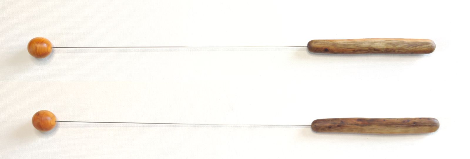 Kugel und Griff sind aus Eibenholz, der Draht besteht aus Federkernstahl, er wurde in Kugel und Griff eingefügt und mit Kunstharzkleber befestigt.