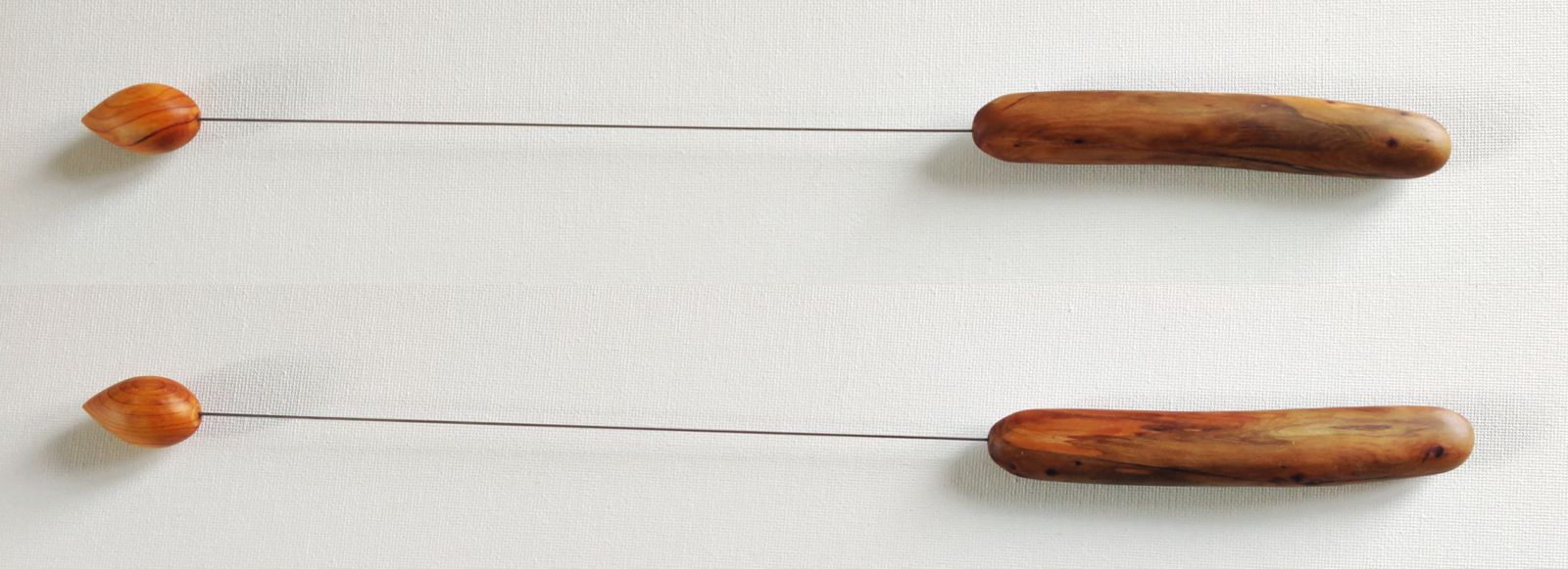 Kugel und Griff sind aus Eibenholz, der Draht besteht aus Federkernstahl, er wurde in Kugel und Griff eingefügt und mit Kunstharzkleber befestigt.