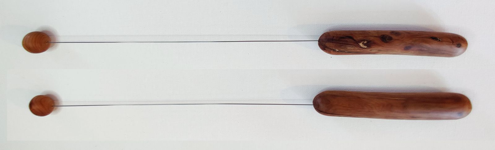 Kugel und Griff sind aus Eibenholz, der Draht besteht aus Federkernstahl, er wurde in Kugel und Griff eingefügt und mit Kunstharzkleber befestigt.