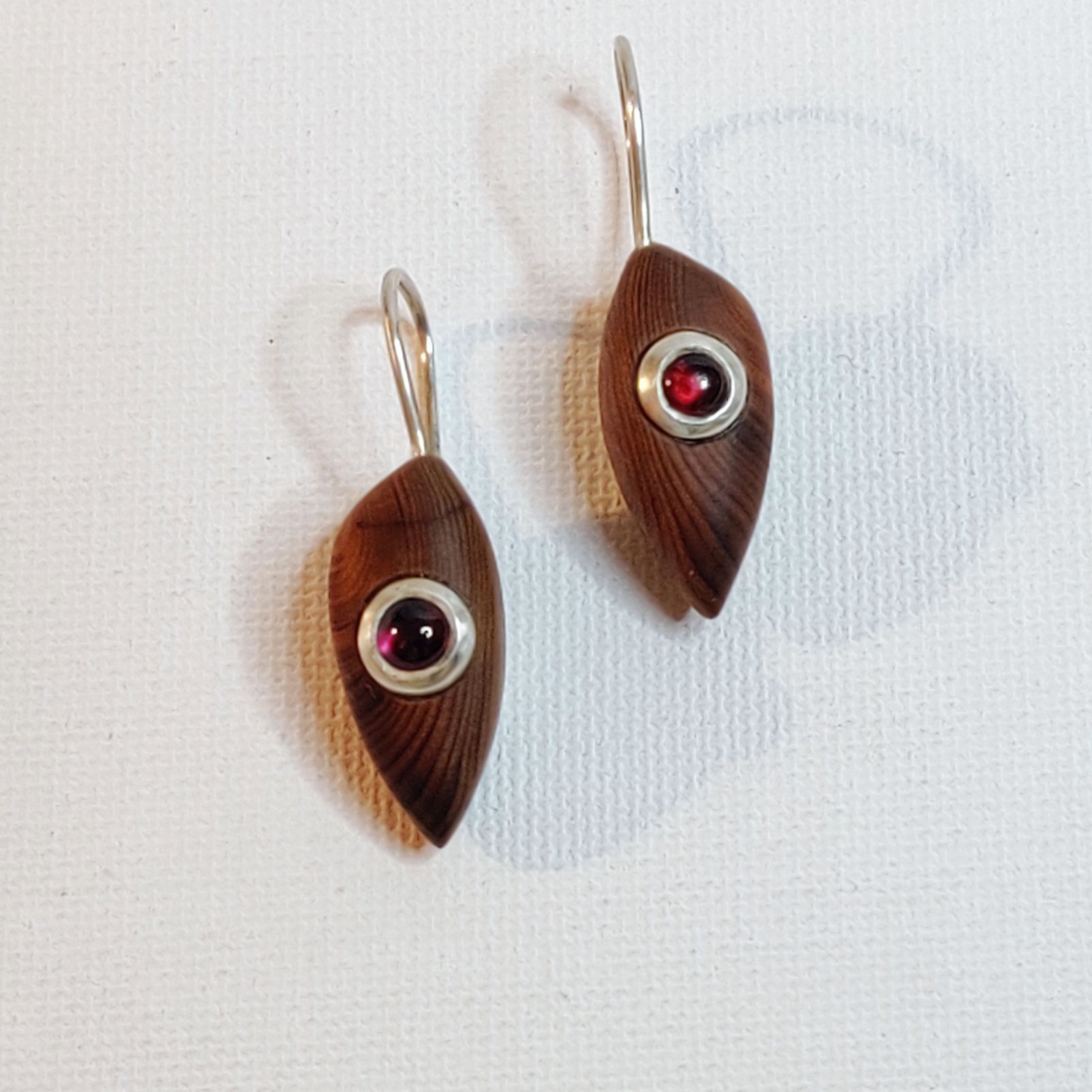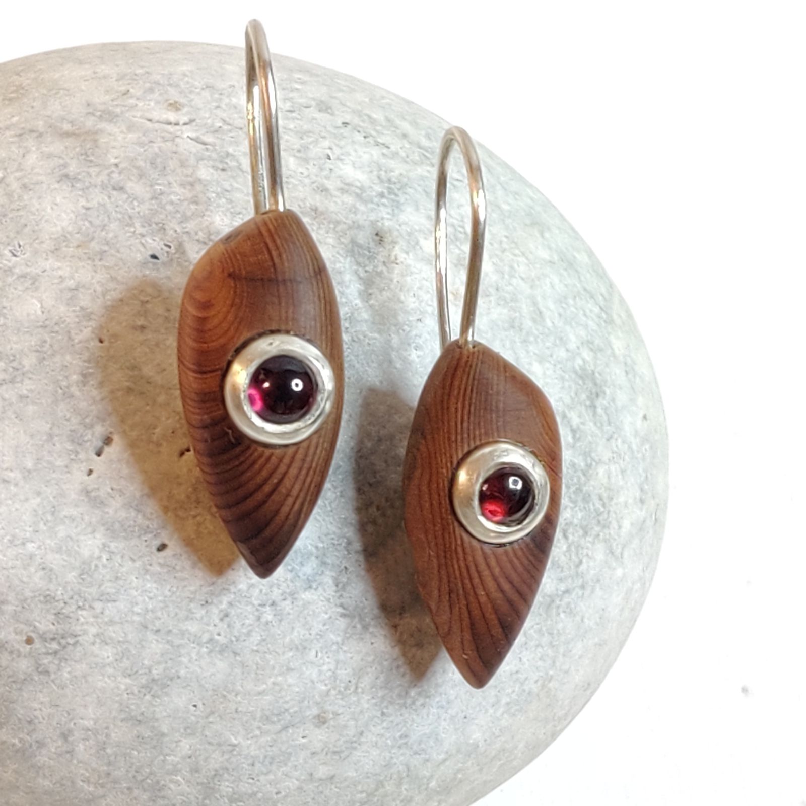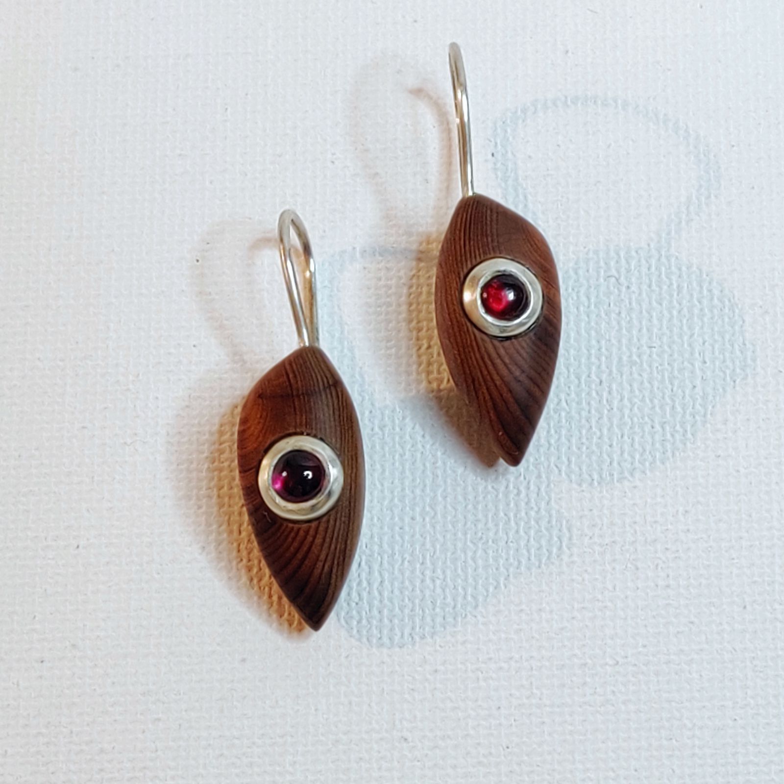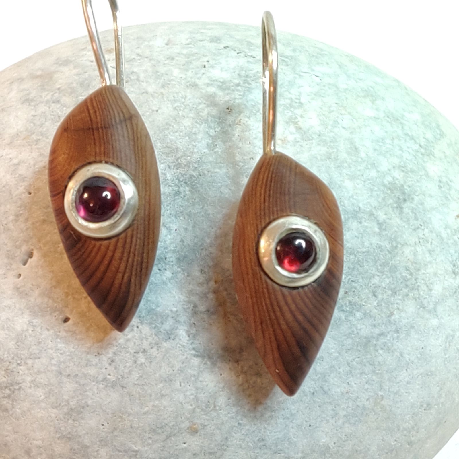 Eiben-Ohrhänger mit rotem Turmalin 1,