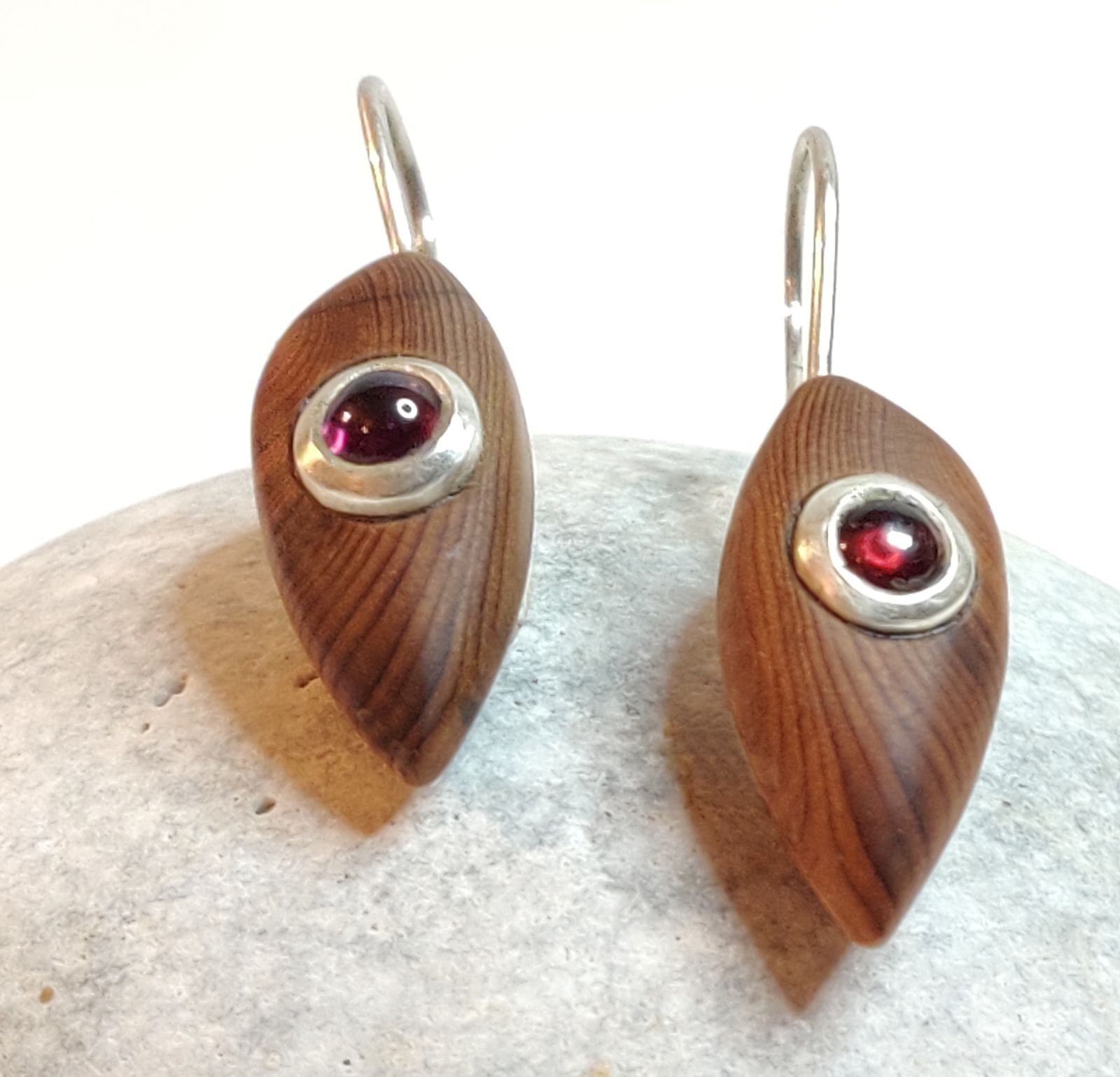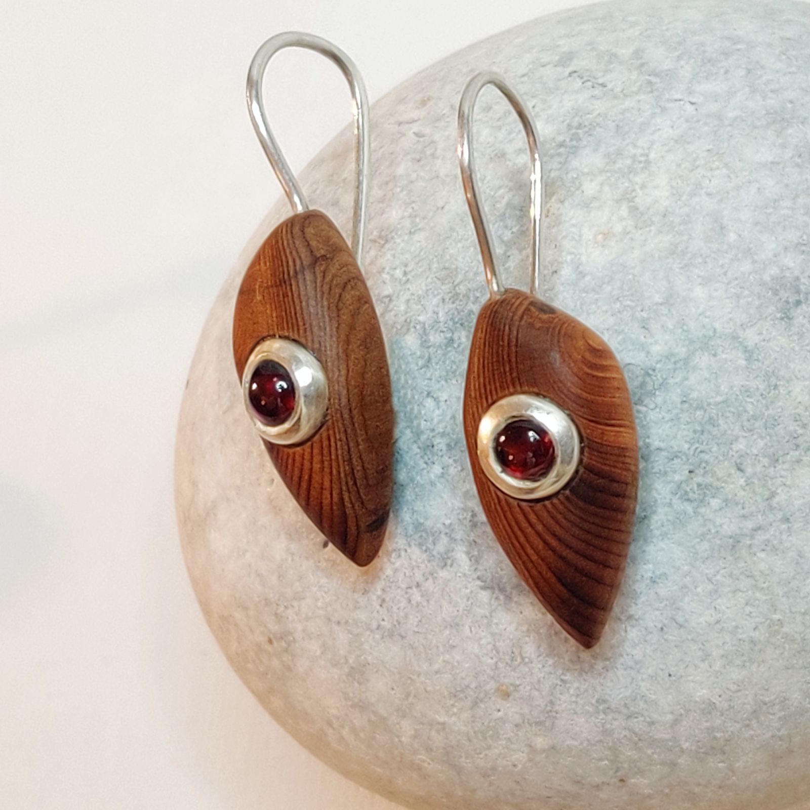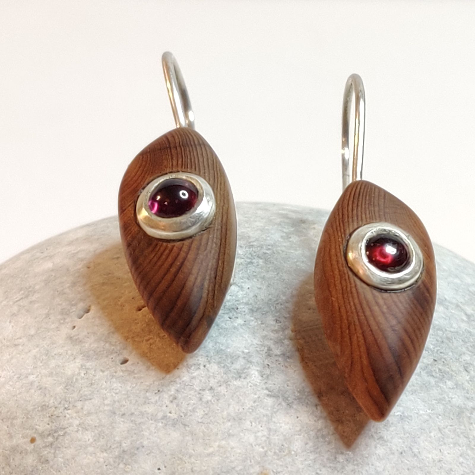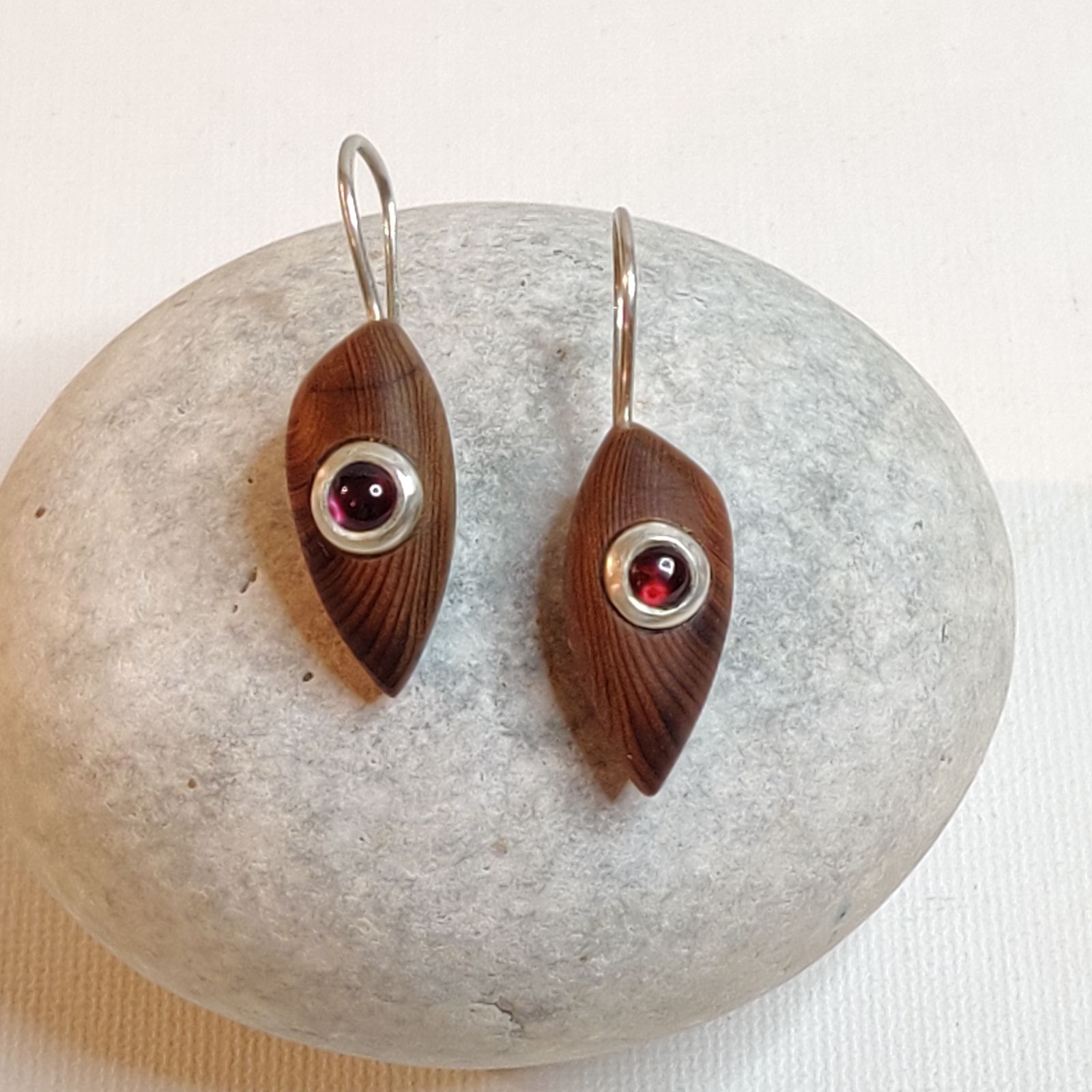 Eiben-Ohrhänger mit rotem Turmalin 1,