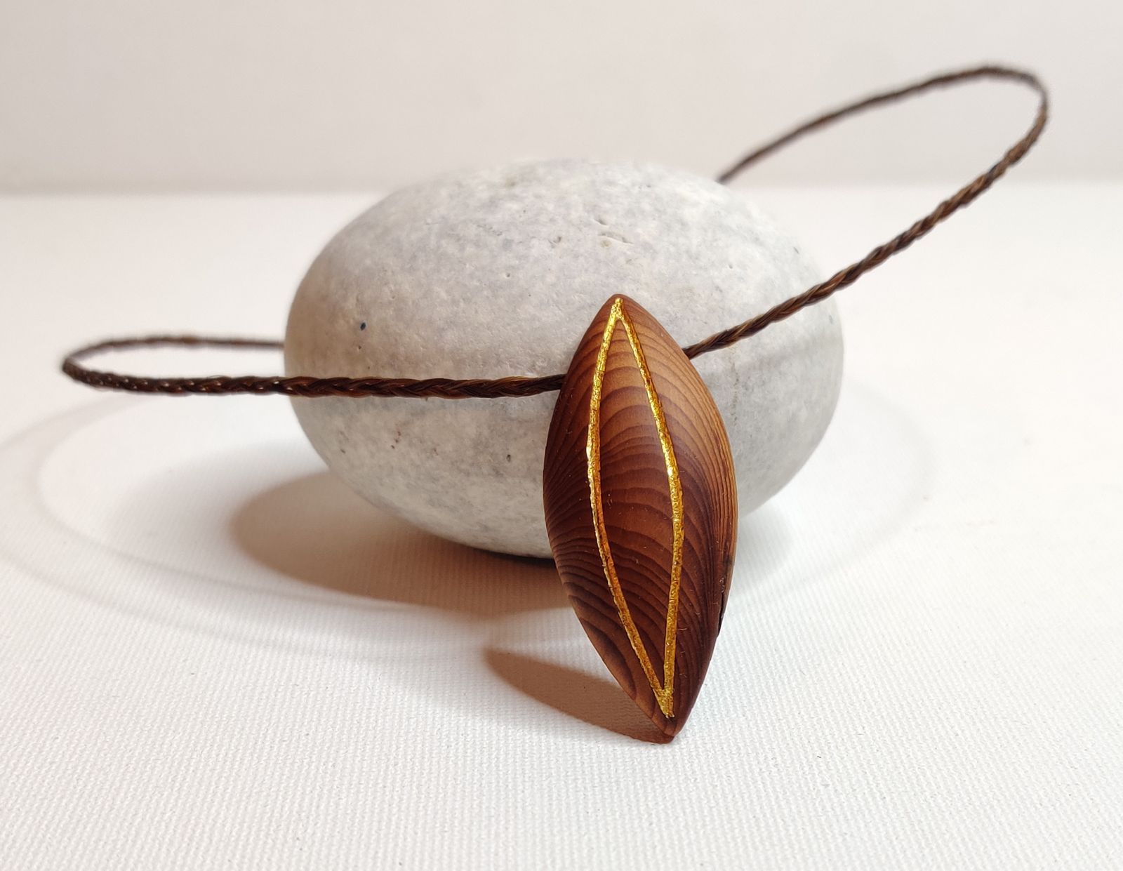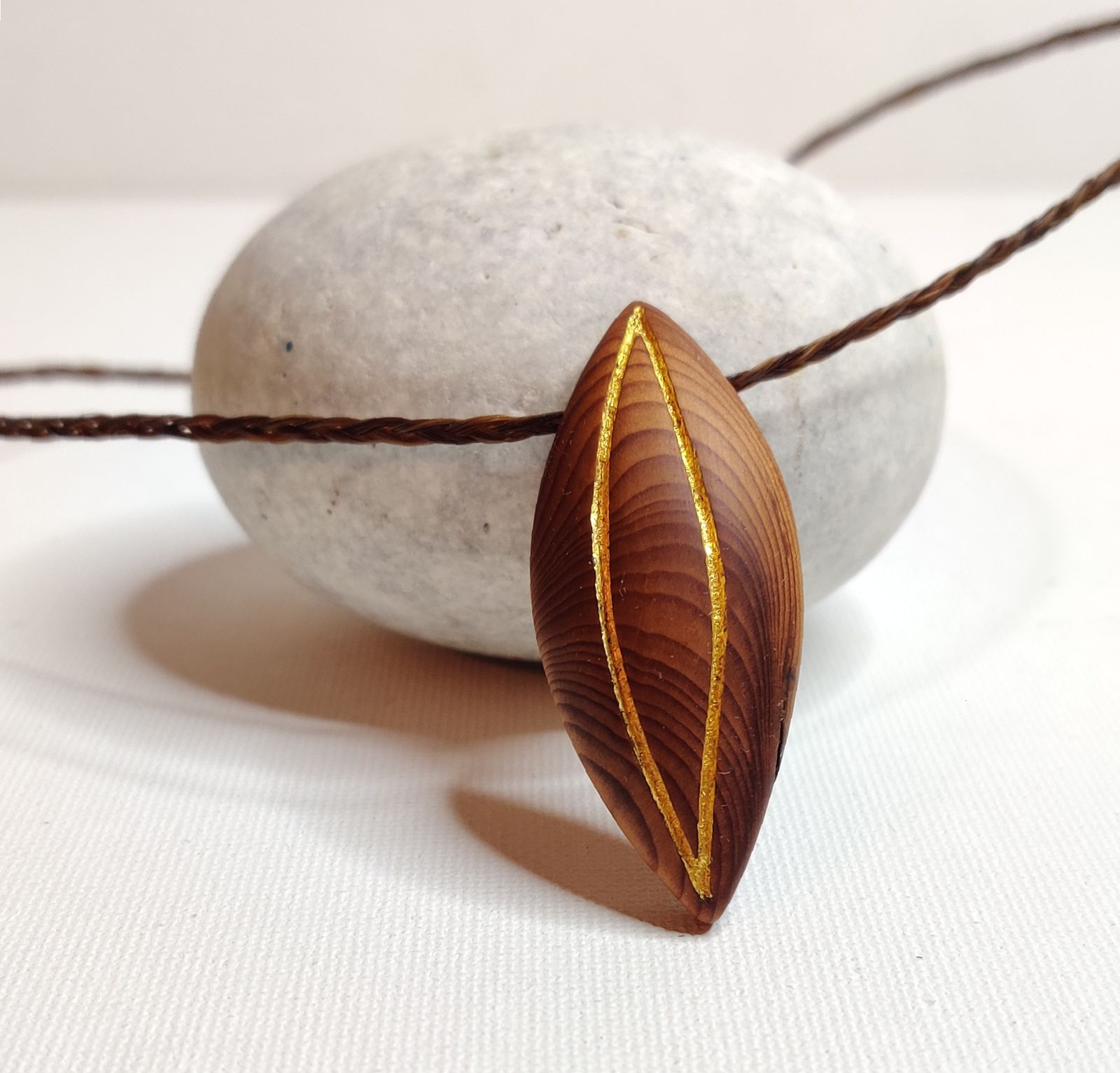 Amulett mit ausgefräster Spirale und eingelegtem Blattgold.