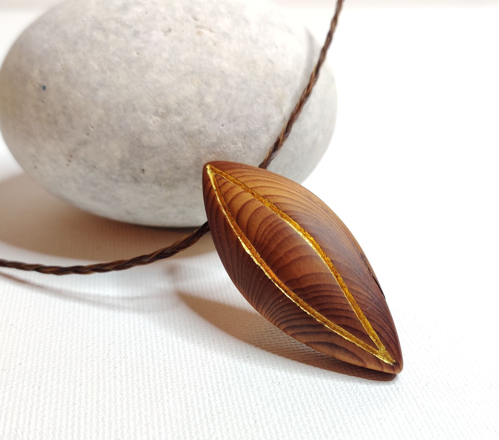 Eibenamulett mit Mandorla aus Blattgold