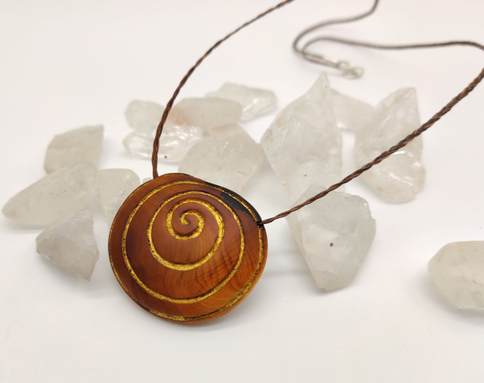 • Eiben-Amulette mit Blattgold, Blattsilber und Intarsien